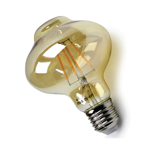 A 4W filament LED lamp with a stylish golden shaded glass, imitating the E27 based Edison incandescent lamps, Ideal for hospitality and residential applications.