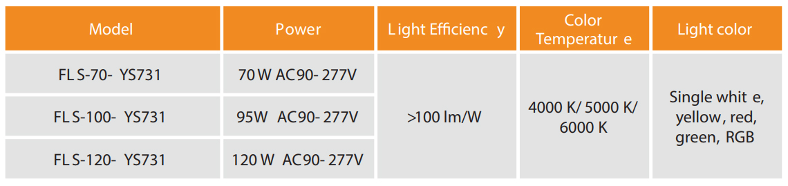 - Power: available for 42pcs, 56pcs or 70pcs individual LED, range 48~125W;
